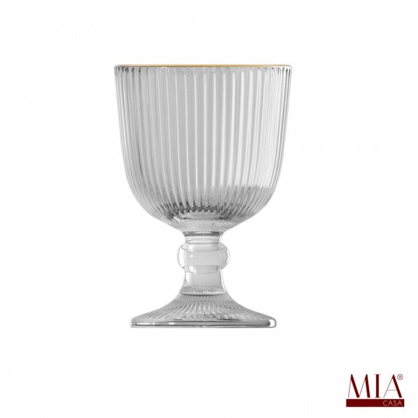 Capacidade: 380ml, taça em Vidro, com detalhes em dourado na borda .